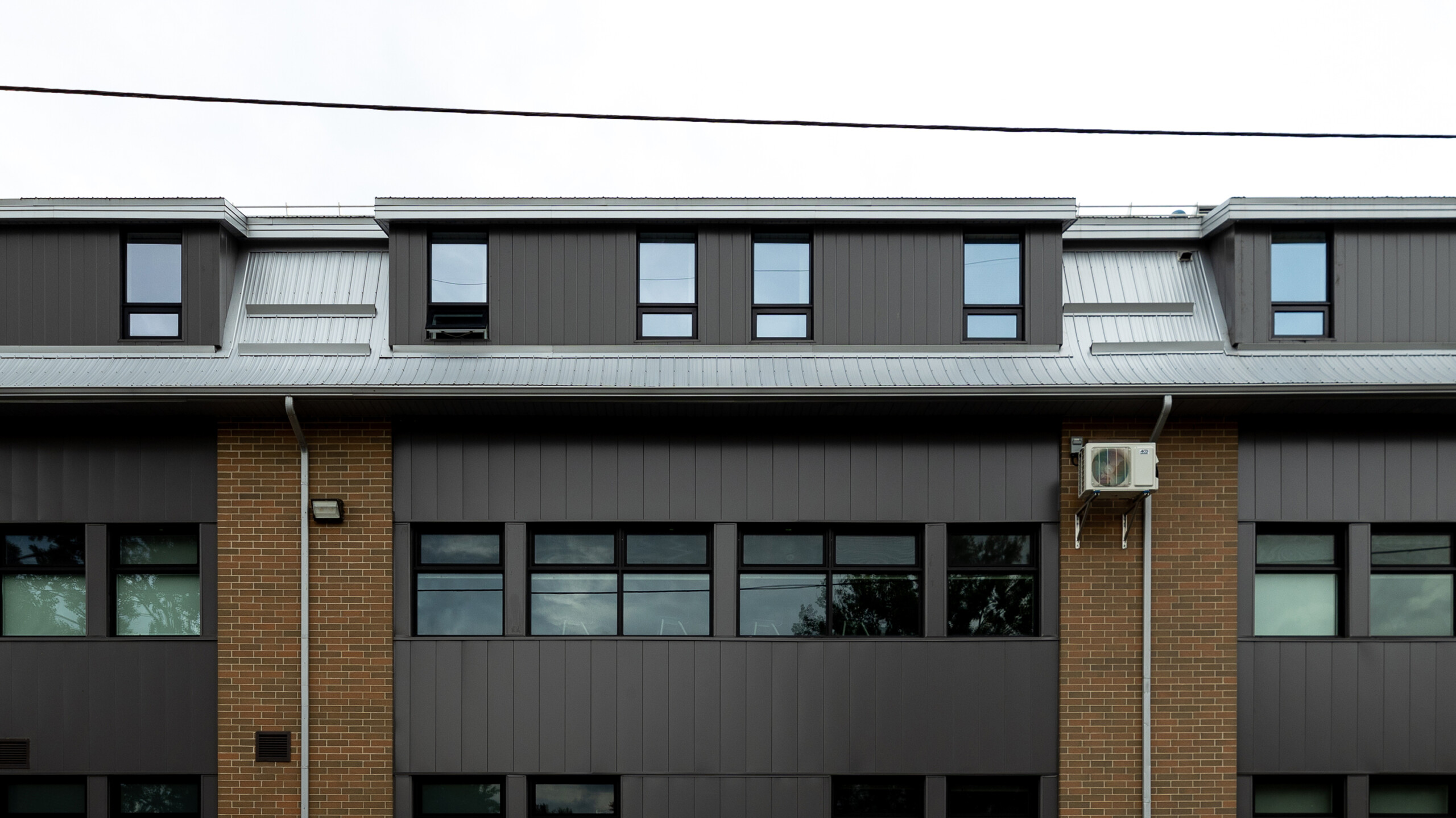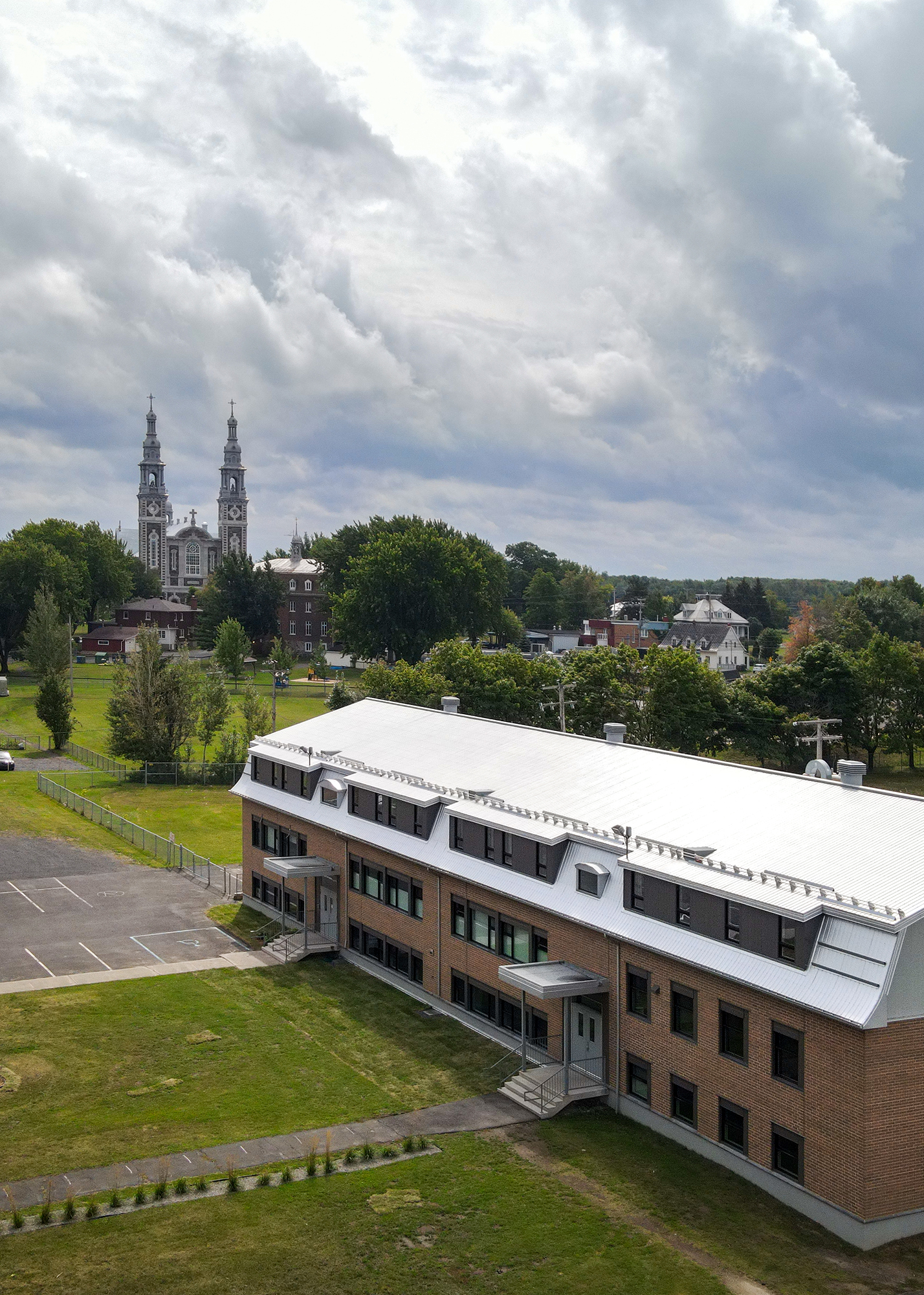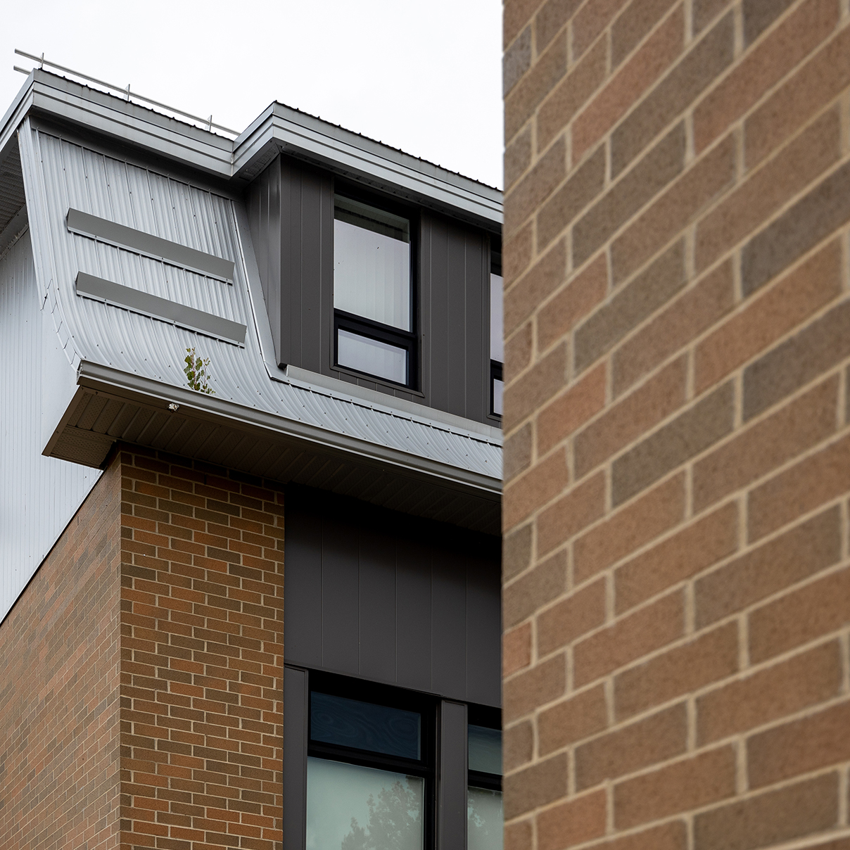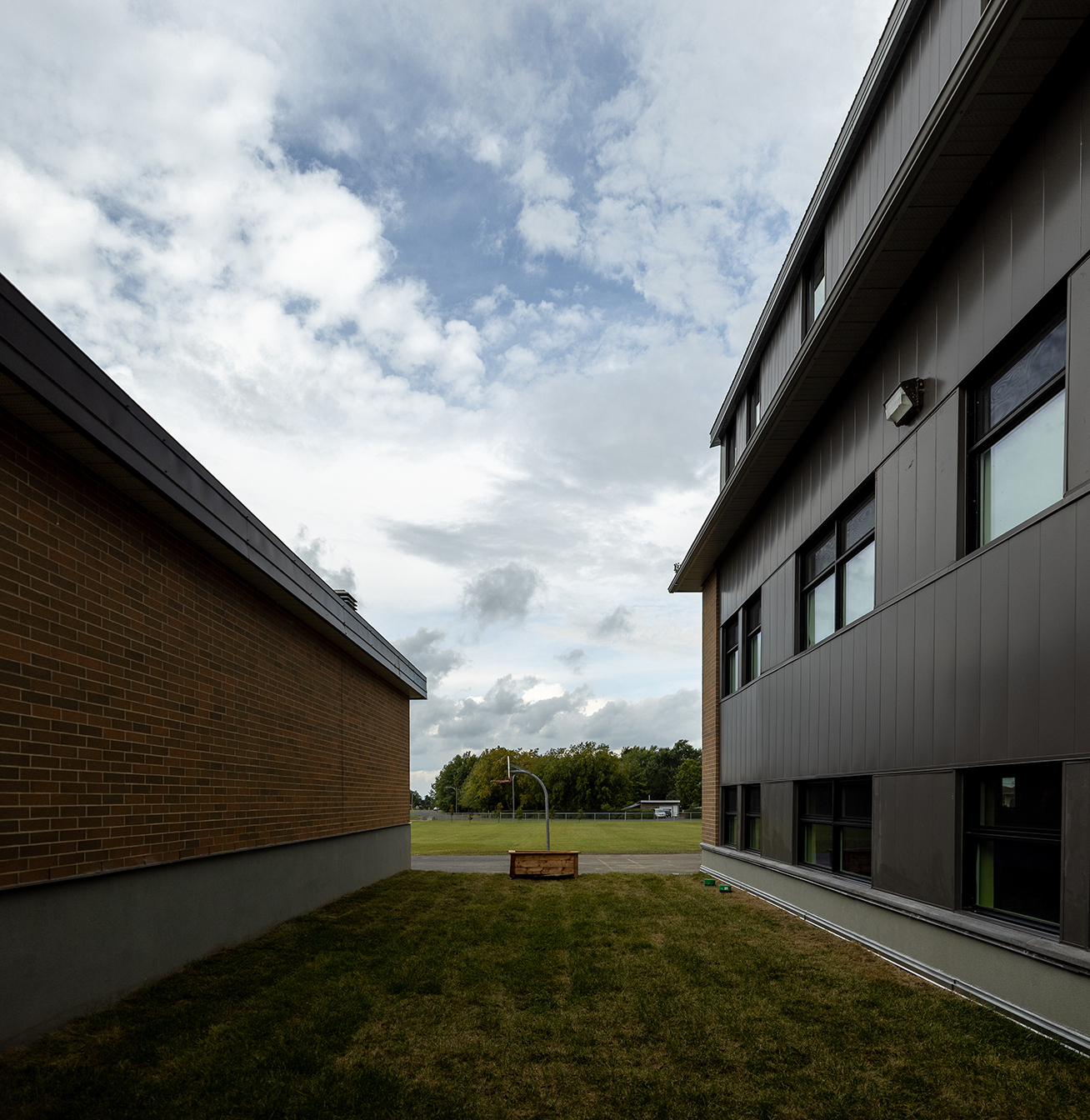 Cette réfection a été réalisée avec l’intention de minimiser les travaux sur la façade existante et d’ainsi respecter la trame des percements d’origine tout en s’intégrant à l’architecture de l’école. Le projet a également présenté des défis et particularités associés aux critères de performance des matériaux qui se devaient d’être particulièrement résistant aux impacts potentiels. Finalement, des études préparatoires portant sur l’étanchéité du bâtiment ont été effectuées.